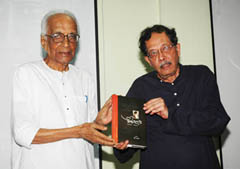 Poet Nirendranath Chakraborty and Prof. Sabyasachi Bhattacharya at the launch of Rabindranath: Bakpati Biswamana, Vol.II, 11 August 2011